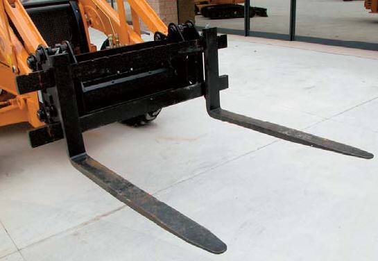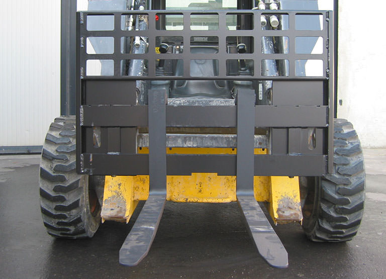lyžiny, rýpadlo-nakladače nebo kolového nakladače (verze použité na lyžinách jsou vybaveny ochranou proti převrácení nákladu - viz foto).