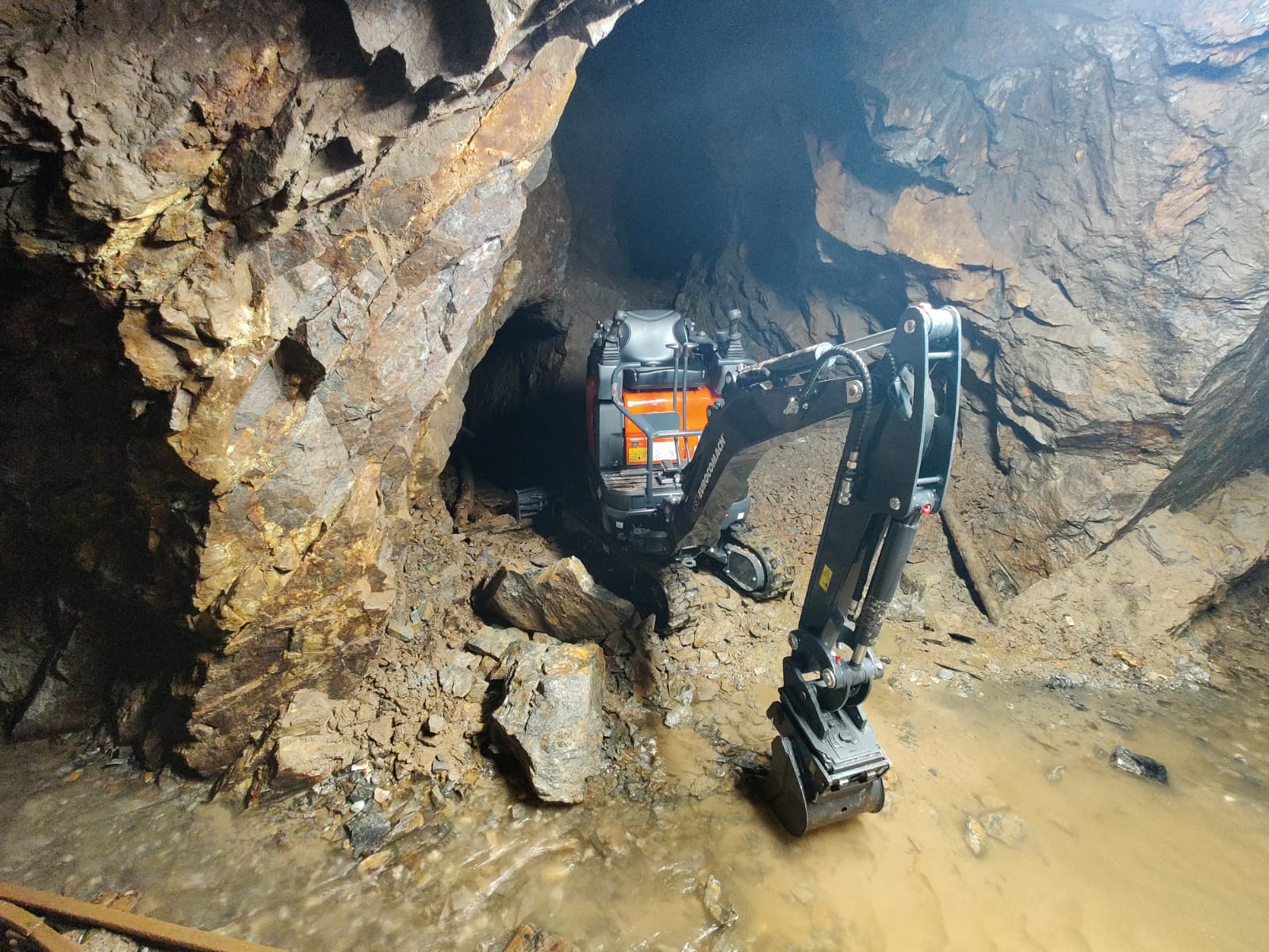 Do nádherné přírody Krkonoš jsme odvezli bagr Eurocomach. Nyní již na plné obrátky pracuje v magickém dole pod Sněžkou.