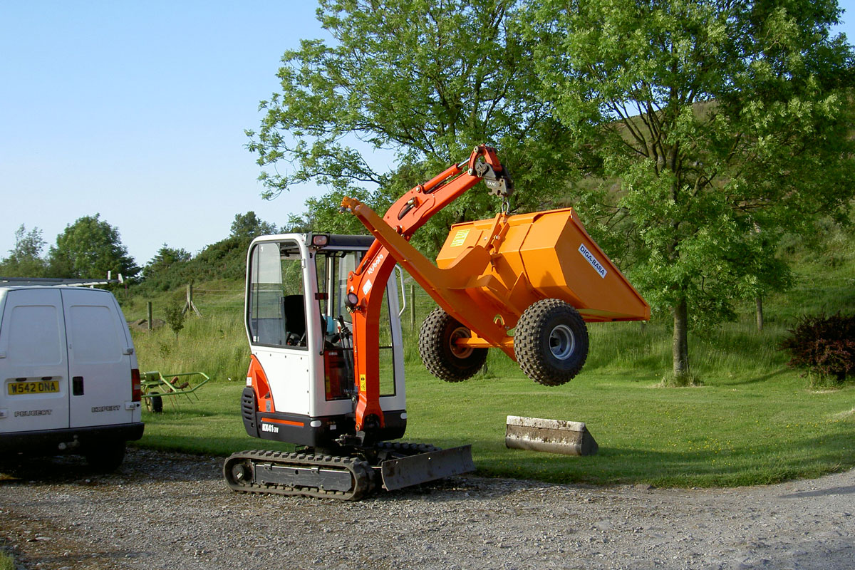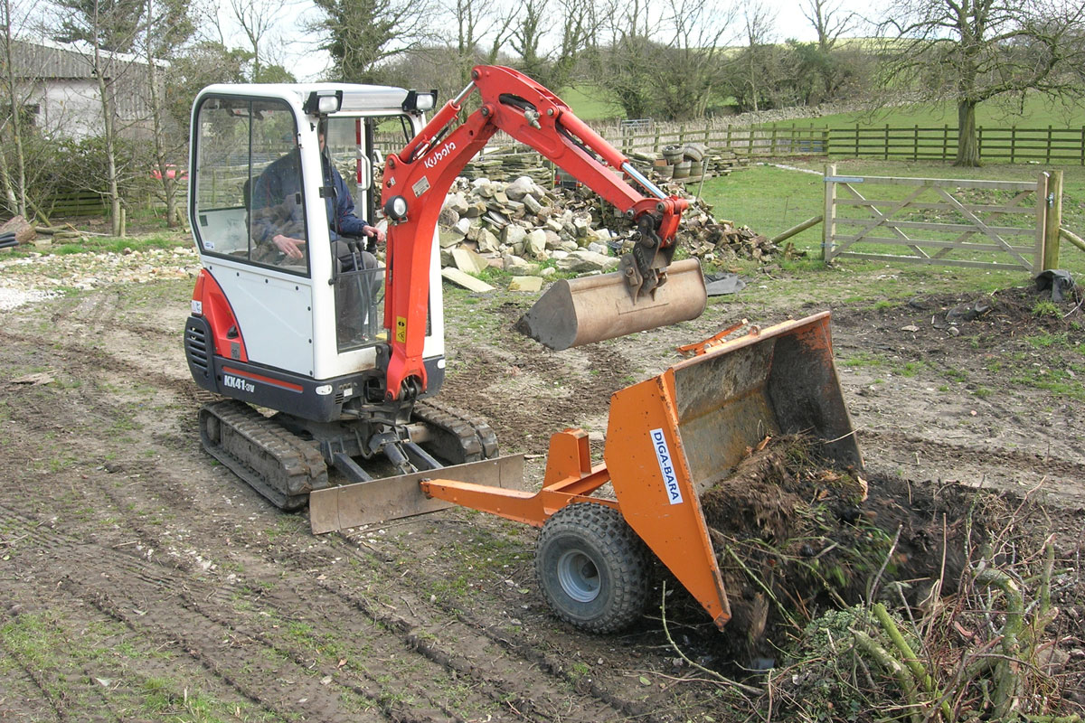 Diga Bara je řada sklápěcích návěsů navržených tak, aby vyhovovaly bagrům do 3 tun, které se pomocí čepu připevní k radlici během několika sekund. Mechanický mechanismus hrotu je ovládán lopatou rypadla a jeho flotační pneumatiky minimalizují poškození terénu. Jeho jednoduchá a robustní konstrukce zajišťuje virtuální bezúdržbový provoz.