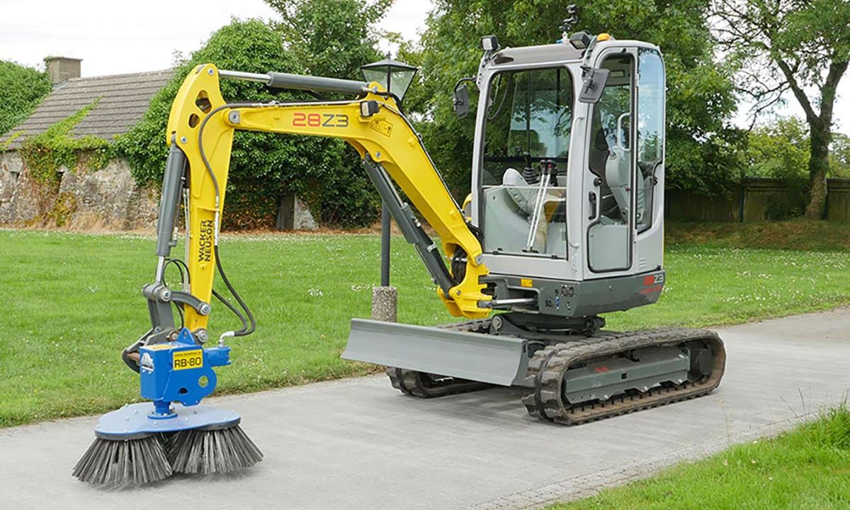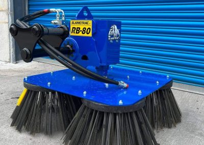 Ideální pro čištění dlažebních kamenů, asfaltu, betonu a zdiva Slanetrac RB Series Minibagrový nástavec na čištění štětců nabízí rychlý a účinný čištění velkých ploch a zároveň má schopnost snadno čistit kolem nepravidelných předmětů.