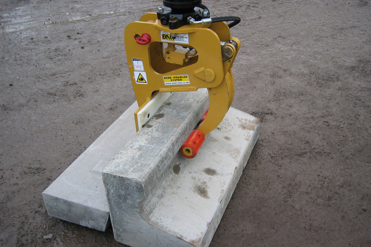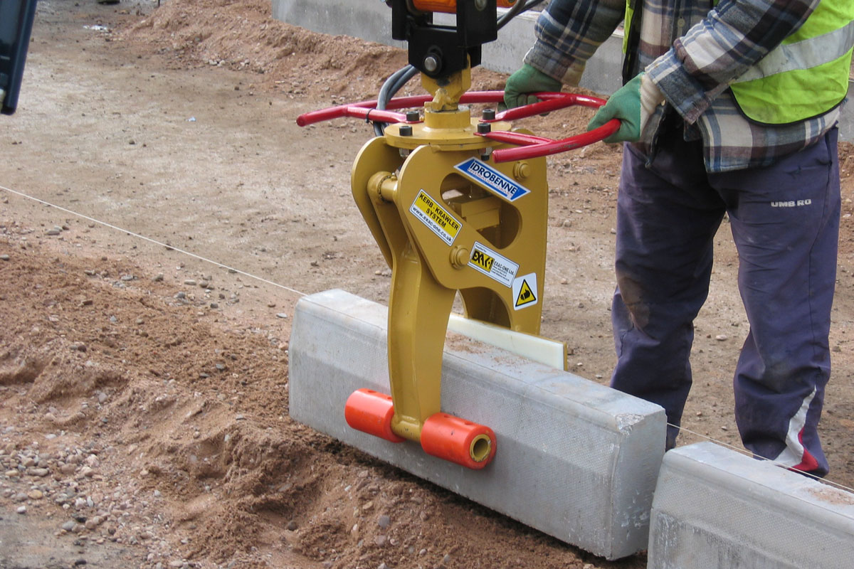 Kerb Grip je řada drapáků navržených speciálně pro manipulaci s obrubníky a je určena pro bagry od 1,5 do 14 tun. Unikátní konstrukce čelistí umožňuje operátorovi rypadla uchopit obrubníky přímo z balíku, aniž by došlo k poškození povrchu obrubníku, a umístit je na linii na obrubník bez ruční pomoci. Obrubník Grip byl navržen tak, aby zvládl širokou škálu typů obrubníků a je k dispozici s řadou různých možností rotátoru.