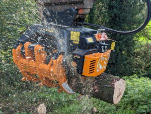 Drapák Scorpion X má jedinečnou schopností být použit jako průmyslový drapák nebo pila, jednoduše přišroubujte pilu a řezejte dřevo a kácejte stromy. Toto inovativní příslušenství spojuje přesnost motorové pily s všestranností drapáku rypadla.