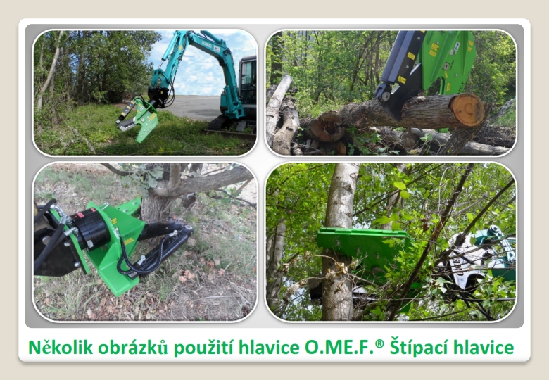 - Lesní štípací hlavice OMEF jsou rozšiřující hlavice určené k ořezávaní a kácení malých a širokých stromů.