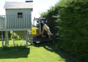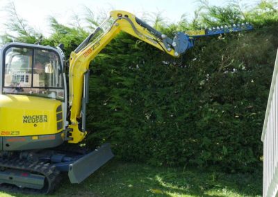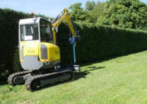Hydraulicky poháněná vratná tyč umožňuje rychlé a čisté stříhání živých plotů. Pro dosažení nejlepších výsledků při těžkém stříhání může obsluha použít otočný pohyb bagru k prořezání hustého těžkého porostu, zatímco pro jemnější a lehčí lemování živého plotu může obsluha použít pohyb sledování k dosažení požadovaného konce.