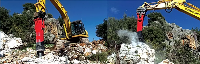 Pracovní aplikace Hard Rock Primární Demolice Železobeton Hutní struska Lom a těžba