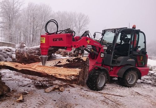- Ideální příslušenství pro efektivní a bezpečné skartování kmenů stromů a kořenů stromů. Hlavními aplikacemi jsou předběžné štípání krmných systémů, jakož i štípání kulatiny pro sušení dřeva. Průměr kulatiny není relevantní. Kmeny měkkého a tvrdého dřeva lze rozdělit.