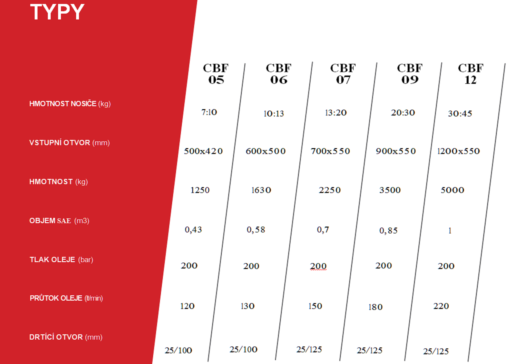 - Nabízíme 5 různých typů pro rýpadla a nakladače od 7 do 45 tun.