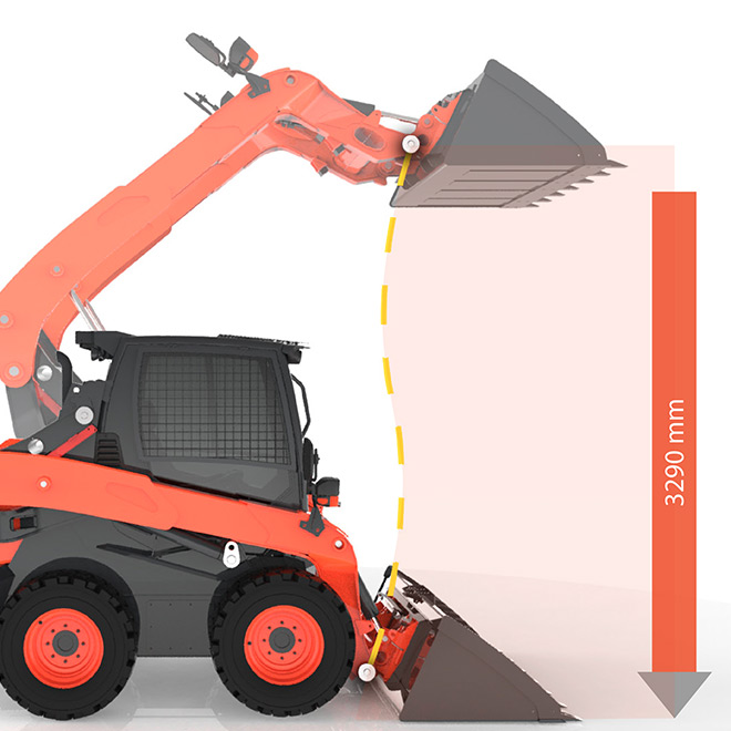 - Velká pozornost byla věnována systému Vertical Lift, který umožňuje značnou výšku zdvihu při zachování stability stroje v každé poloze nákladu.