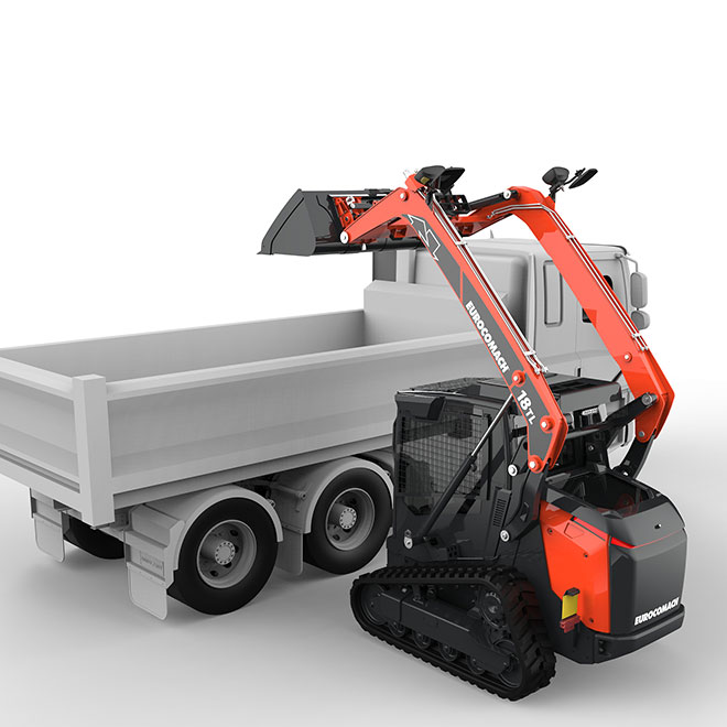 - 18TL je nový kompaktní pásový nakladač s provozní hmotností 4 300 kg a kompletně obnoveným designem.